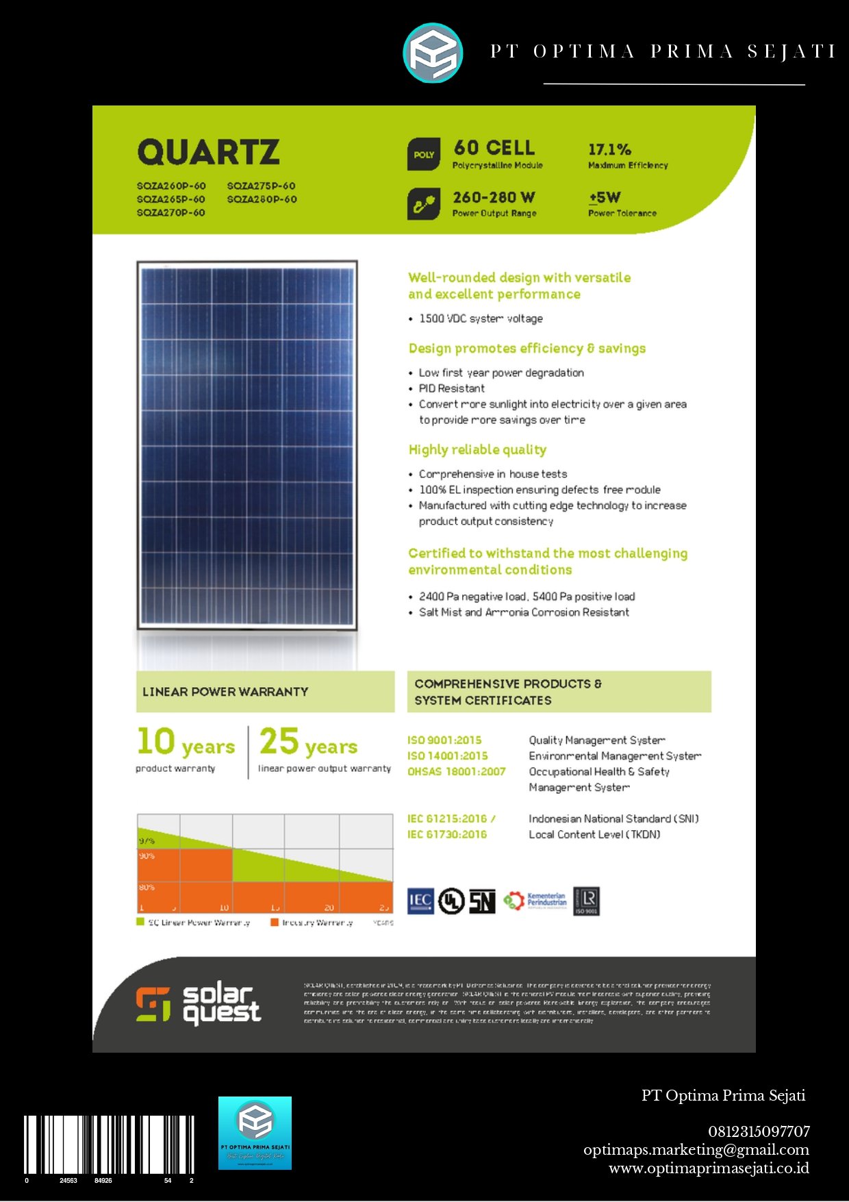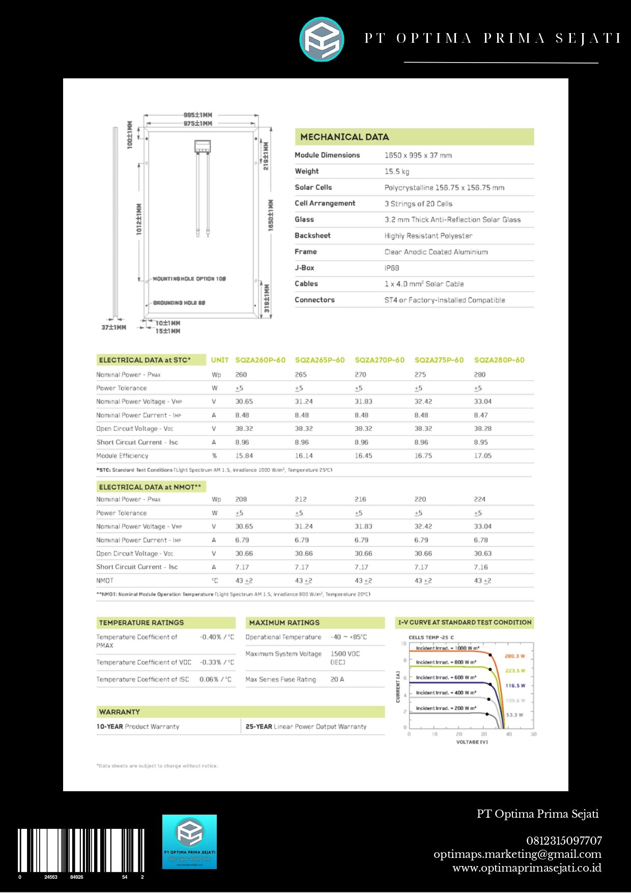 SQZA260p-60, SQZA265p-60, SQZA270p-60, SQZA275p-60, SQZA280p-60